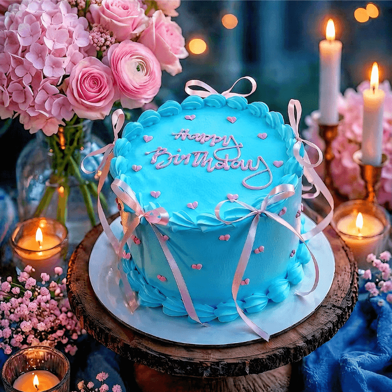 Blue Vintage White Ribbon Cake is an elegant vintage-style cake with white ribbon details, perfect for birthdays and classy celebrations.