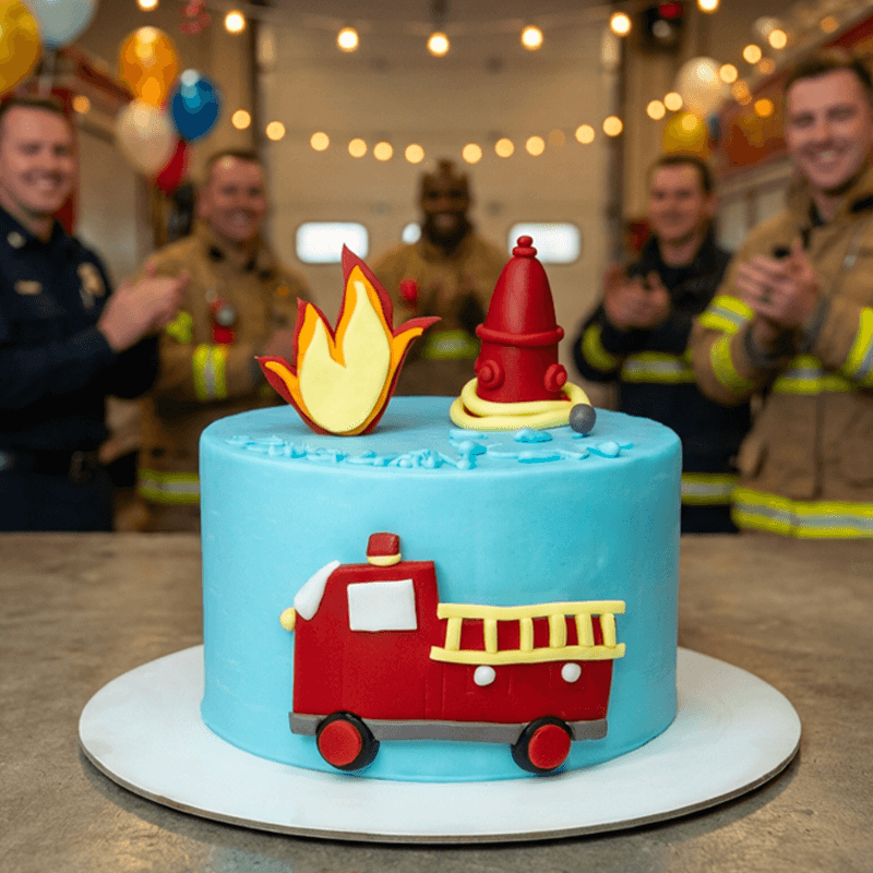 A bold firefighter theme cake designed for heroes at heart, perfect for kids’ birthday parties and themed events.