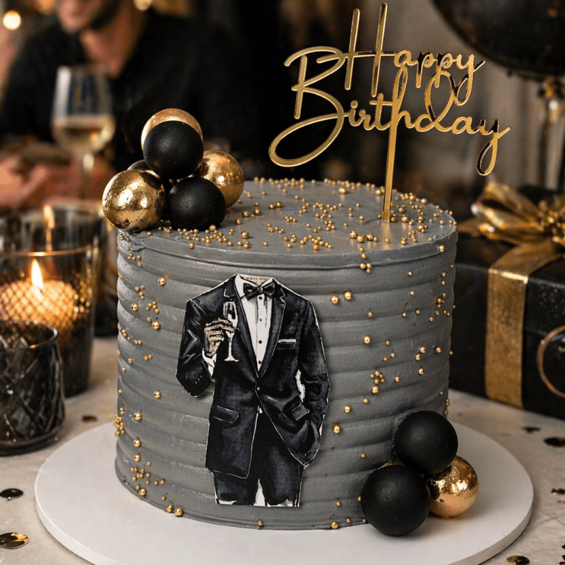 Gold Pearls Man Cake is a classy masculine cake with gold pearl decorations, perfect for men’s birthdays and elegant events.
