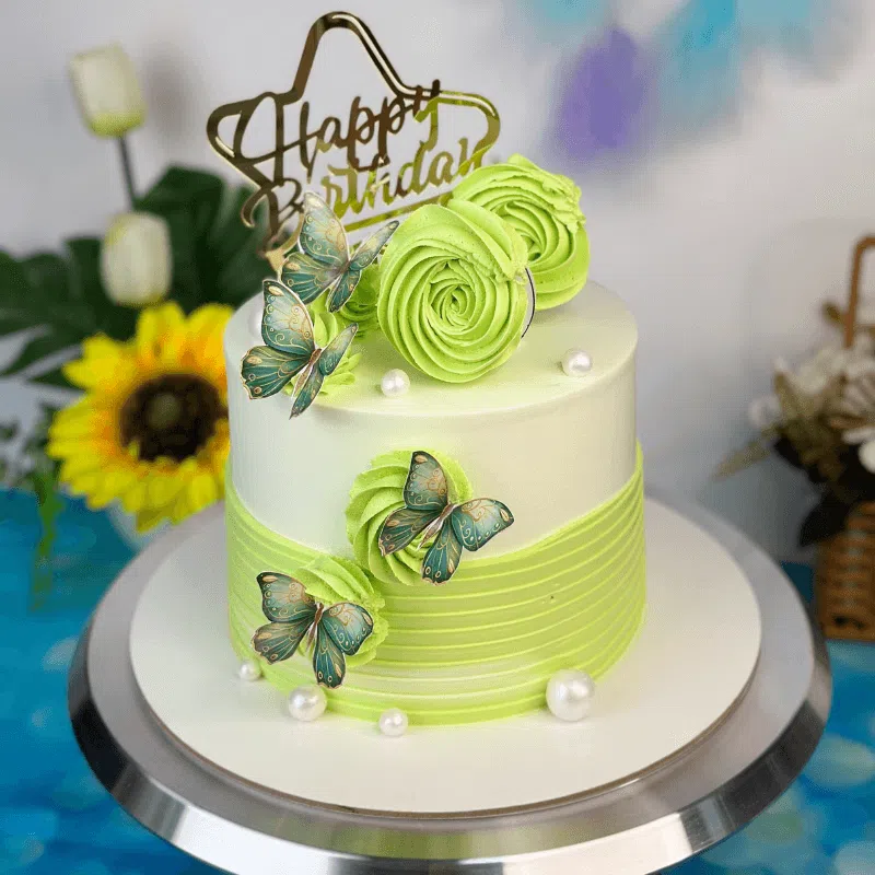A whimsical treat for butterfly lovers! Our Green Butterfly Cake features elegant wings, vibrant green hues, and delicious sponge layers—perfect for magical birthdays!