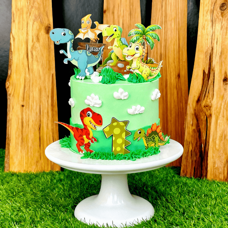 Roar into birthday fun with our Green Dino Animals Cake. Perfect for kids who love dinosaurs and adventure-filled parties. From just 98 AED per 1KG.