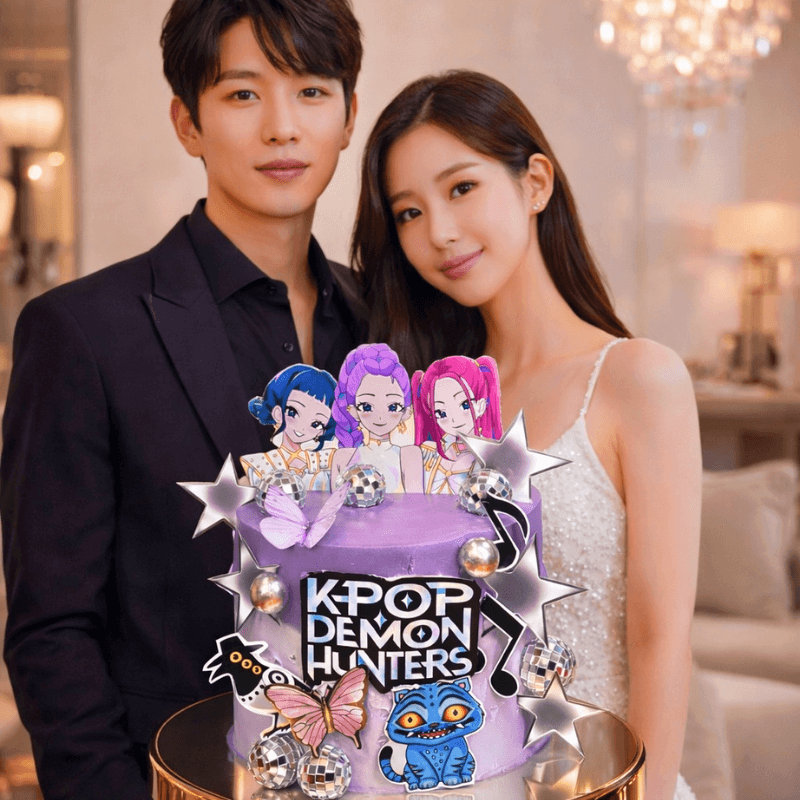 A bold and edgy Kpop demon style cake designed for fans who love dark, powerful, and trendy aesthetics.