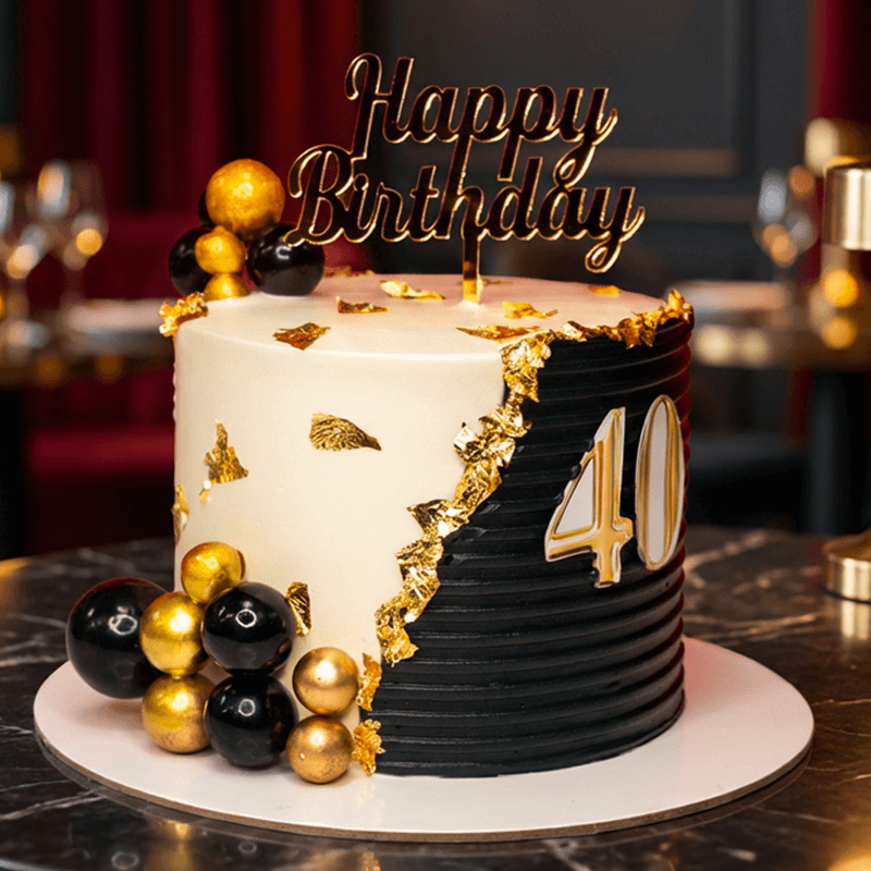 A modern white black adult cake designed for sophisticated adult celebrations and elegant occasions.